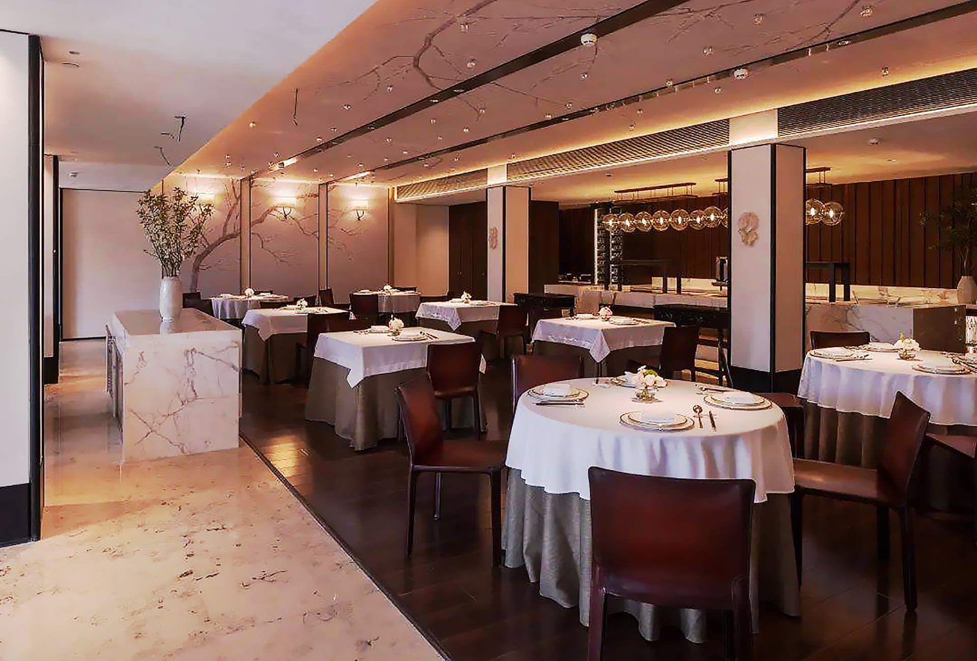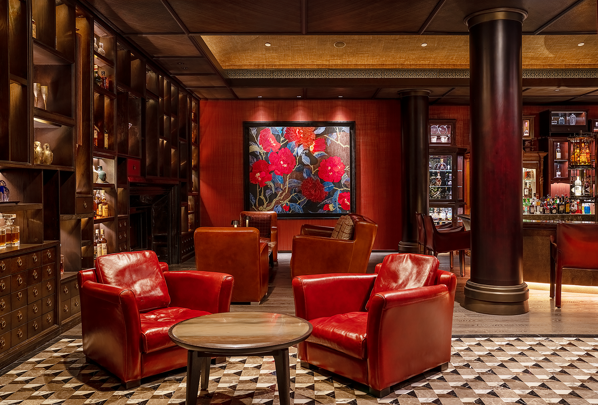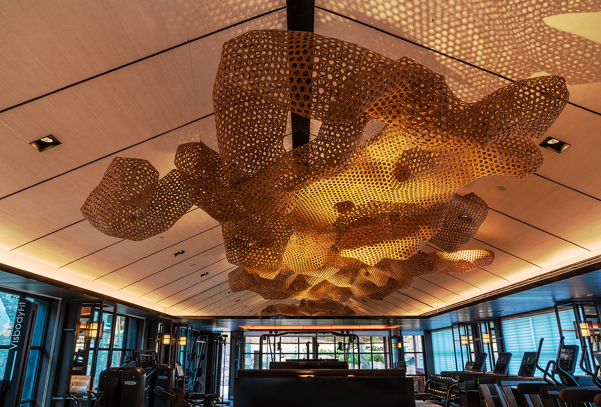酒店内还设有禅修室、茶空间、餐厅、健身房等休闲场所,以上的公共空间也是整个酒店设计的亮点。休闲空间整体色调以红棕为主,石材奢华质感能够很好的和原木融合。顶部天花区域设计造型各有不同,但可以看出吊顶采取雍容庄重的构架,结合了多种材质组合设计加以合适的线型灯光选型方案打造出丰富形态的创意格调。
