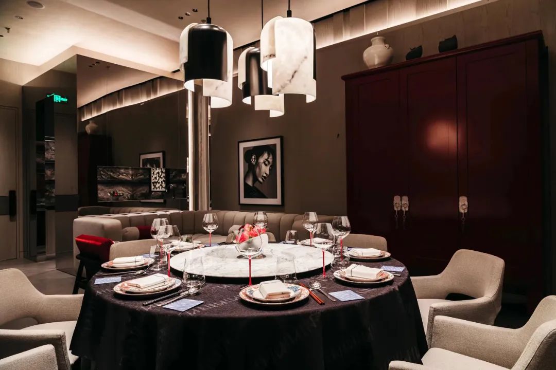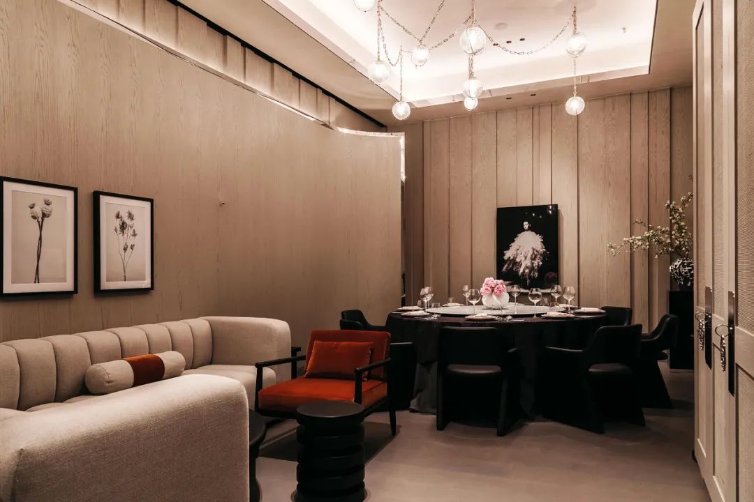 起呈 | 京艷•宴从紫禁城每个包厢区域其天花处都各具设计特色,极具美感的灯具造型配合GUOWIN国盈的双色温透镜灯带 1800K+2400K超低色温,让天花通过照明“洗墙”的方式让空间线条感贯穿始终。挂画间,装饰处,在整体暖高级灰的主色调下铺以暖色照明更映衬出奢华高雅的东方宫宴之感。