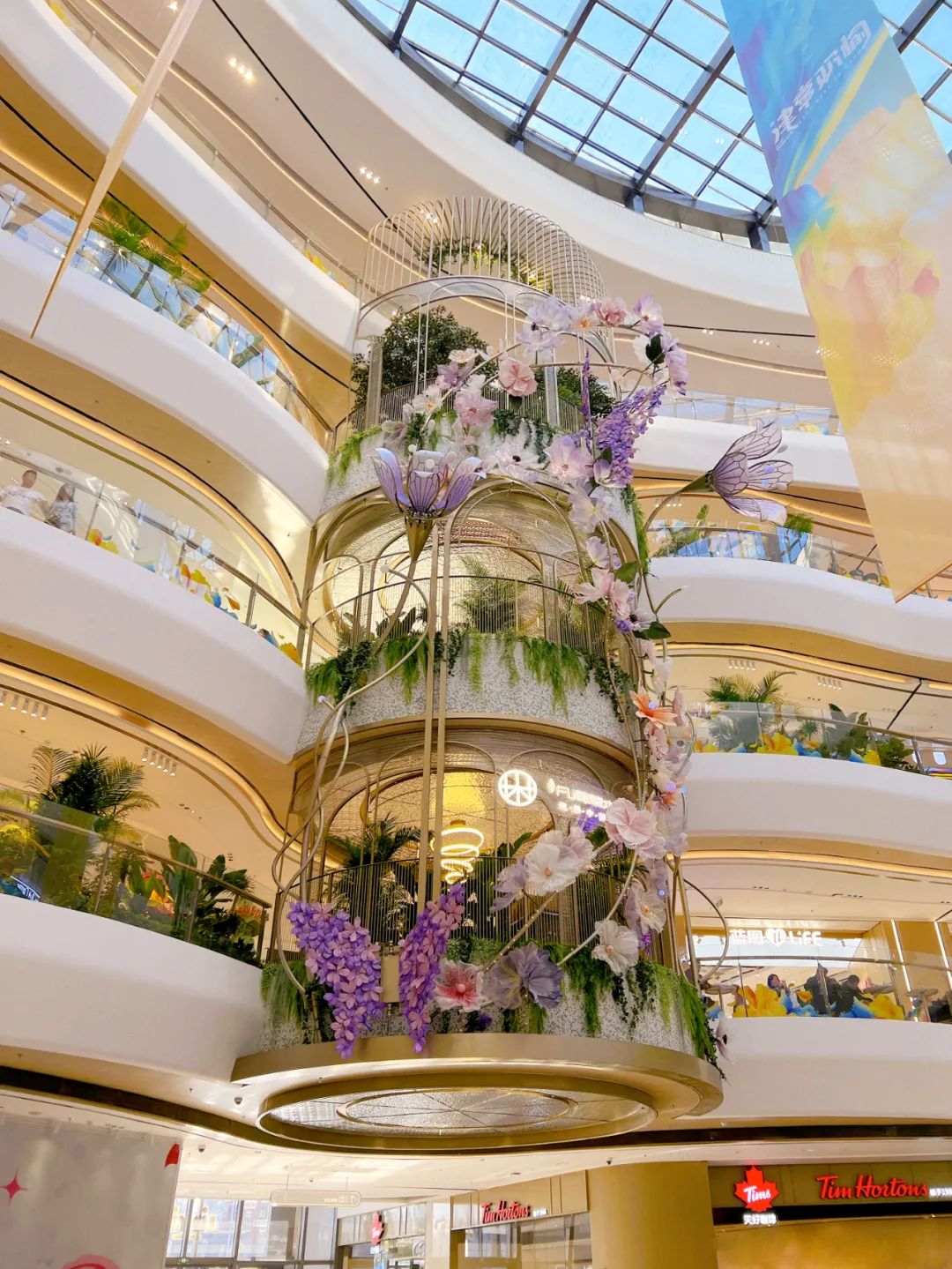 “花园客厅”、“时光印象”、“森林探秘”三大主题中庭设计在满足亮度照度的同时考虑到空间的主题布局设计,美轮美奂的中庭艺术装置仿佛置身于格林童话的繁花森林中。